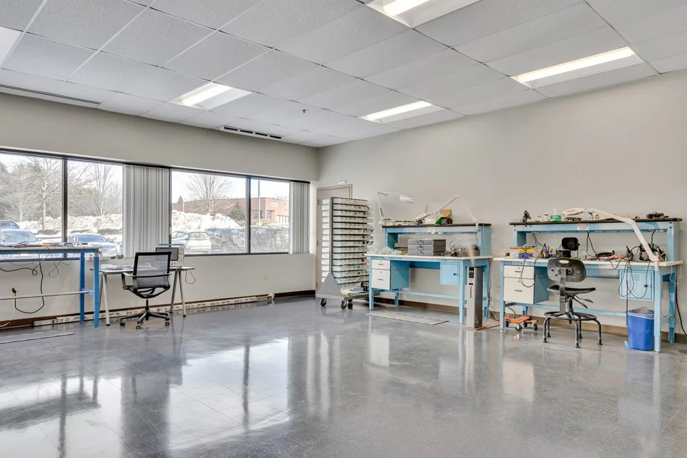 Employee experience was a key focus throughout the project. The employee entrance was redesigned and rebuilt to improve access and ease of use, and the cafeteria and lunchroom were fully demolished, reconfigured, and expanded to support company growth. The upgraded kitchen includes new cabinetry, countertops, a sink, updated flooring, and paint.