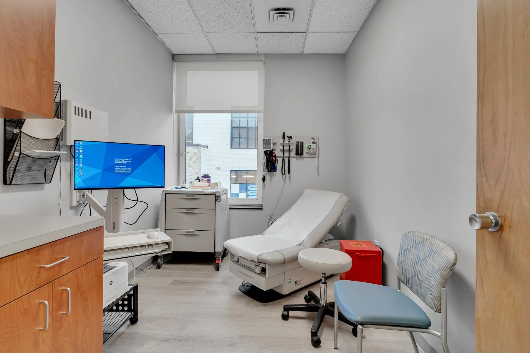 The refreshed facility now features upgraded finishes—including new ceilings, lighting, paint, flooring, millwork, and highly functional transaction windows. More than 30 offices and exam rooms were refurbished, along with an improved reception area designed for both comfort and efficiency.